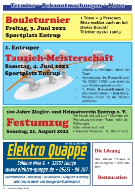 Sonntag, 21. August 2022 Hannelore Wiebusch, Tel. 05261 5222